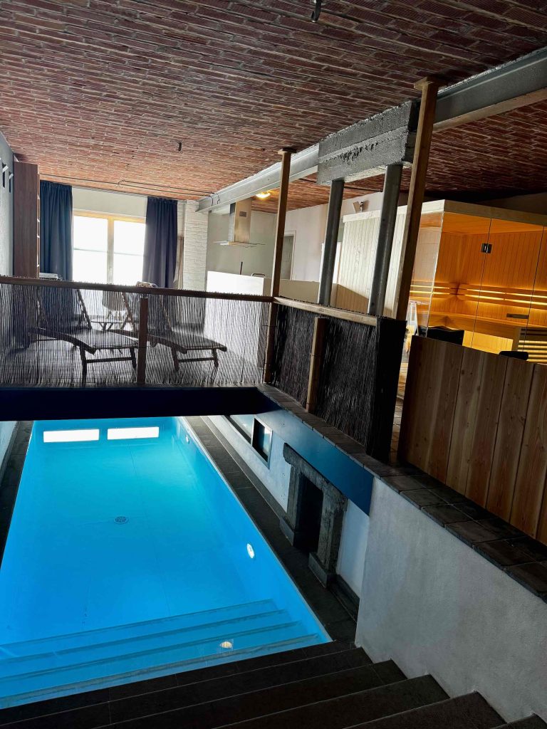 Loft 2 is volledig binnen gerealiseerd in een stoere, industriële stijl, verrijkt met weelderige planten voor een kalmerende, biophilic sfeer. U geniet steeds in volledige privacy van alle luxe faciliteiten. Laat de dagelijkse hectiek achter u en dompel uzelf onder in de warmte van ons verwarmde binnenzwembad (30°C), de zuiverende nevel van de hammam, de intense hitte van de Finse sauna, de ontspannende bubbels van het massagebad, en de verkwikkende stralen van de sunshower.